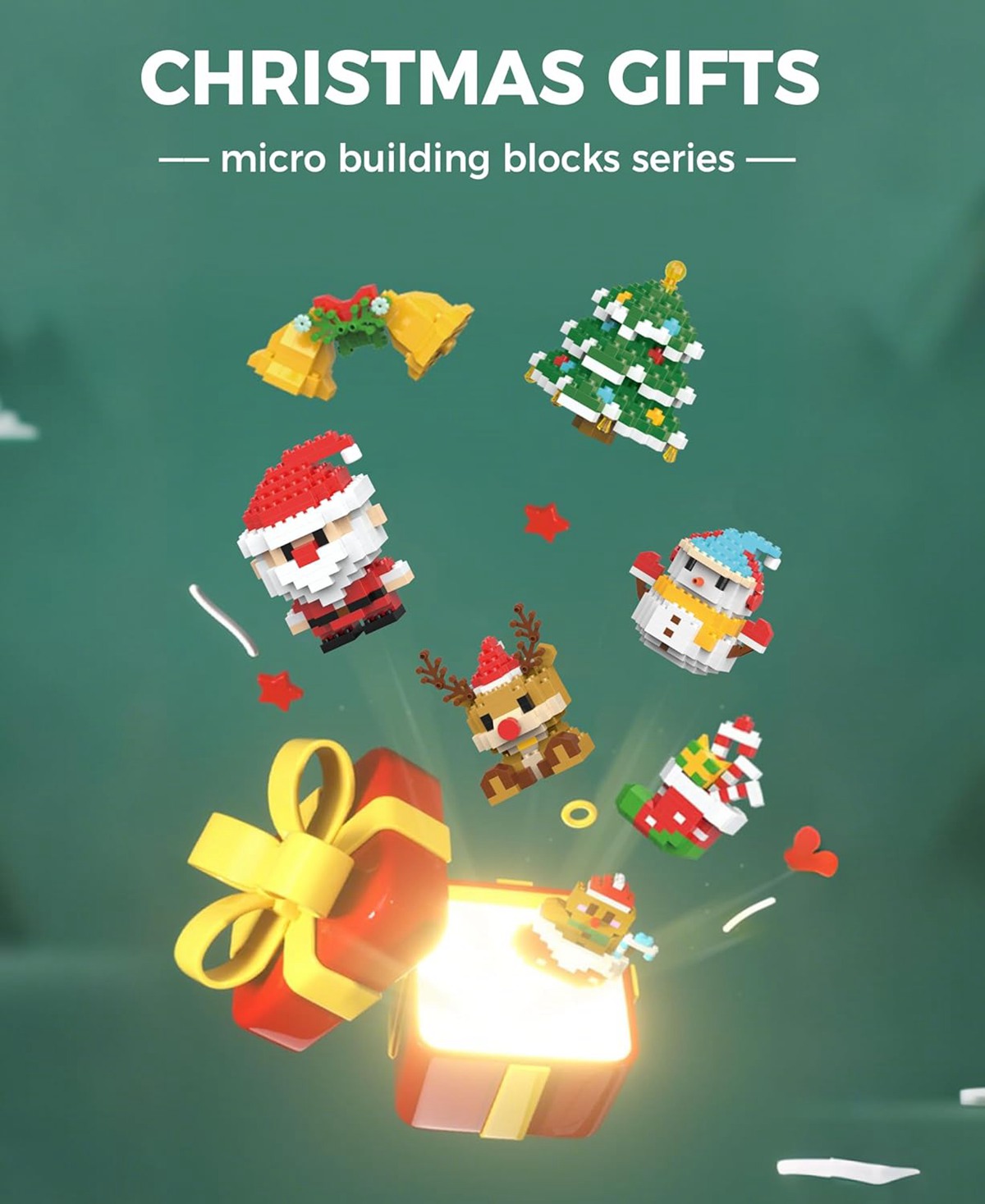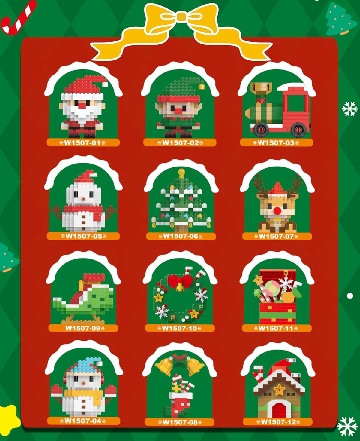 【12-IN-1 CHRISTMAS GIFT】Create a magical Christmas scene with this all-in-one set! This 2025 updated micro building blocks set includes 12 unique designs: Santa Claus, Reindeer, Christmas Tree, Snowman, Christmas Stocking, Train, Candy Cane, Mini House, and more. The perfect foundation for any holiday display or a rewarding building challenge