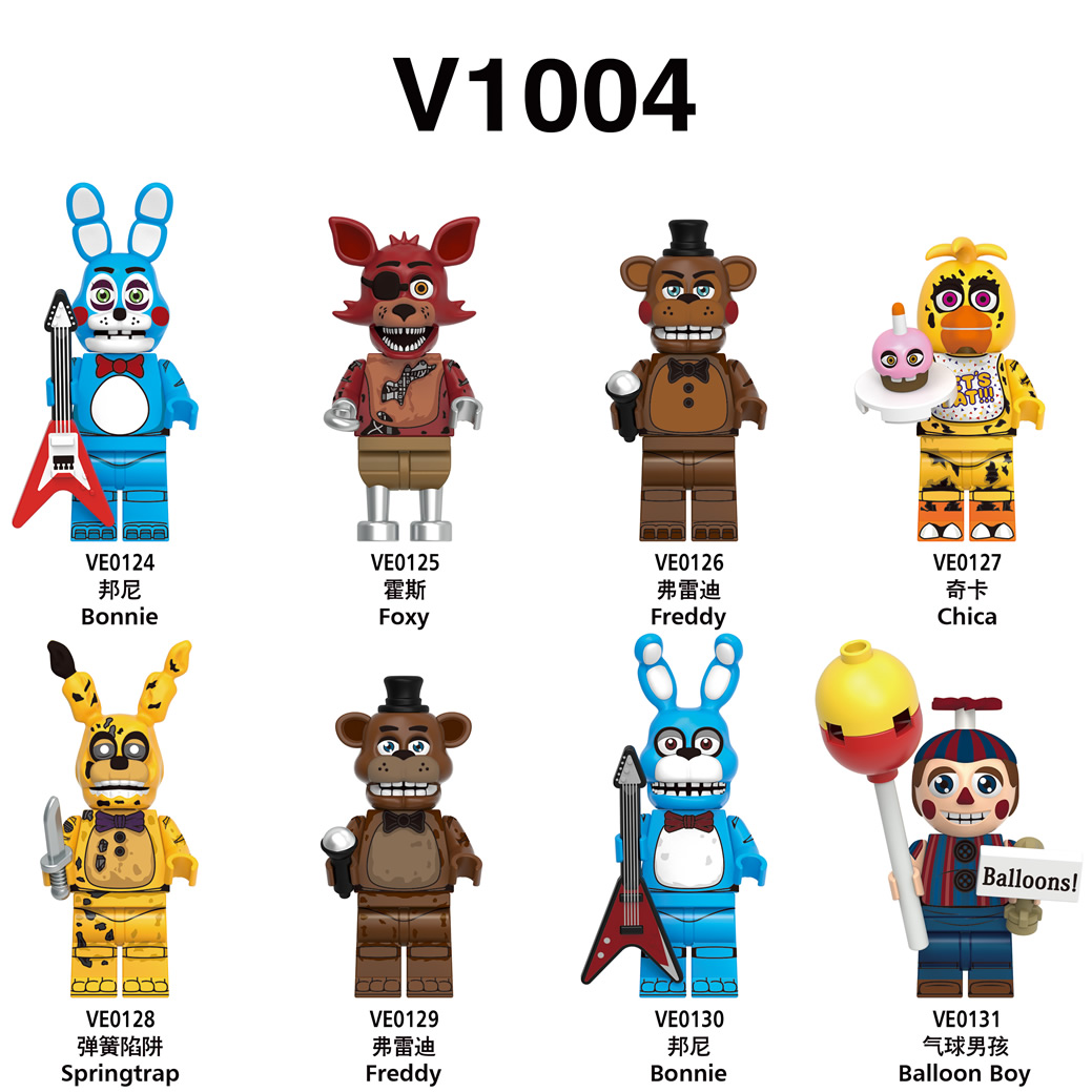 8-Pack Five Nights At Freddy's Mini Figures FNAF Building Blocks Chica Bonnie Foxy Chica Kids Educational Toys Set V1004