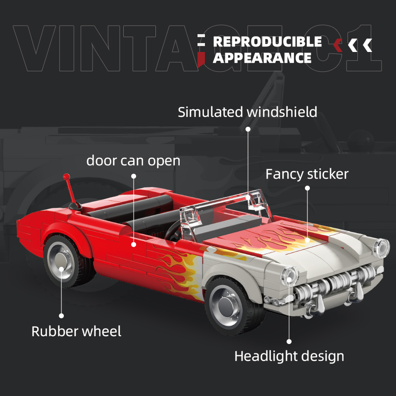 Racing Car Model 1956 Vintage C1 Building Blocks Kit DIY Bricks Educational Toys 250Pcs Set NO.66001