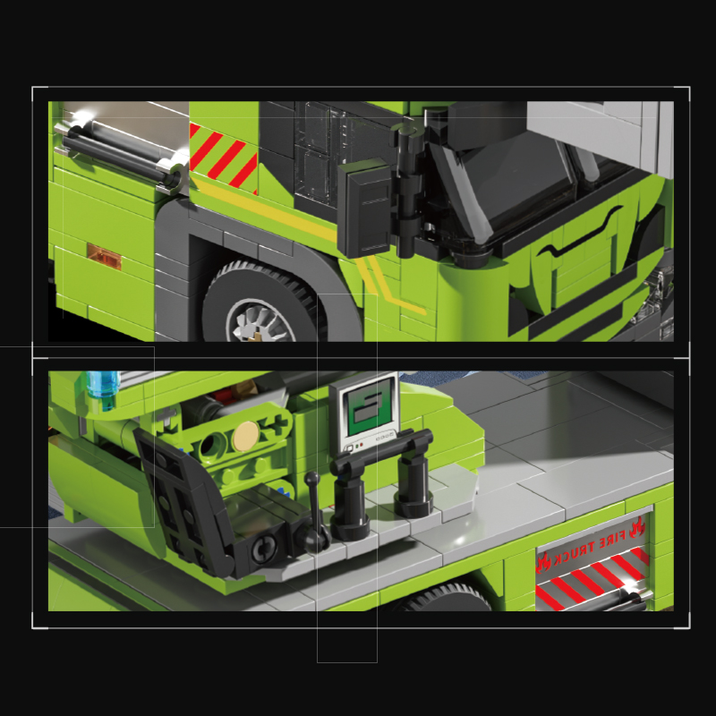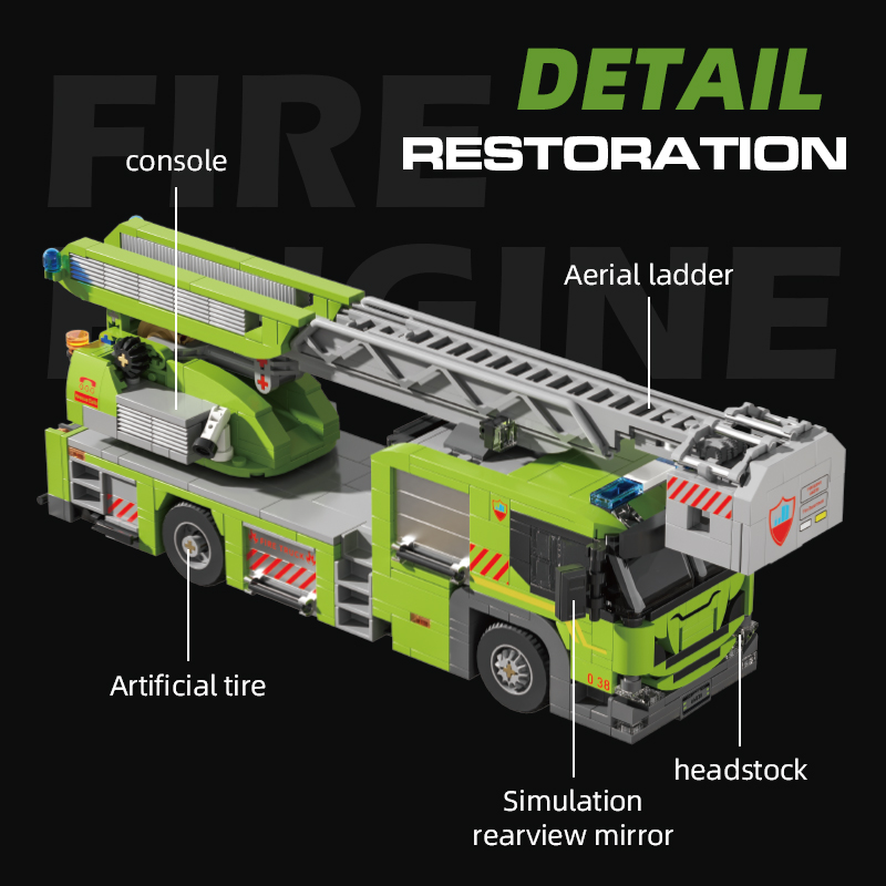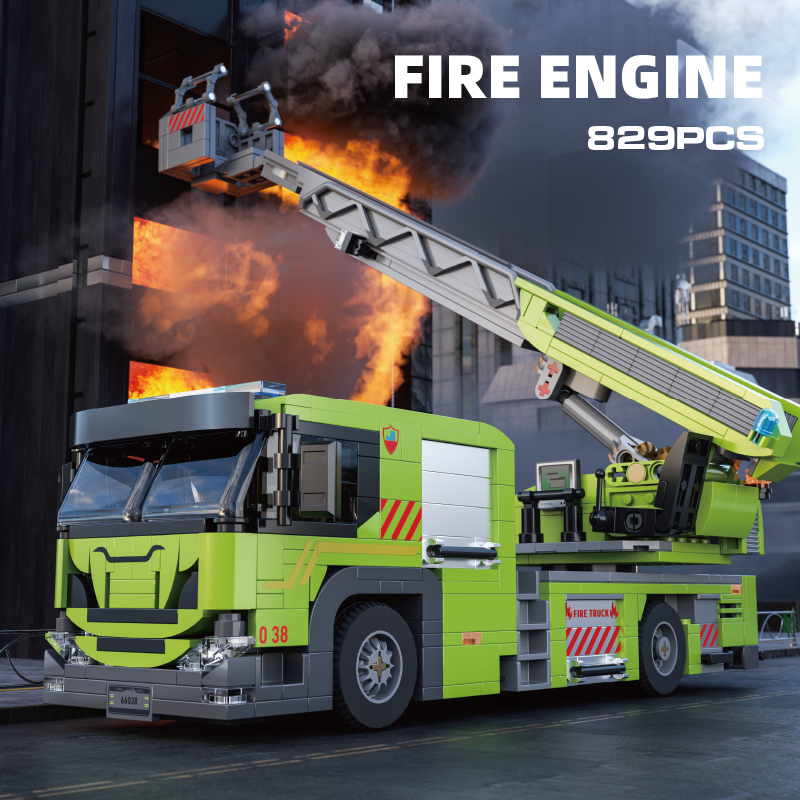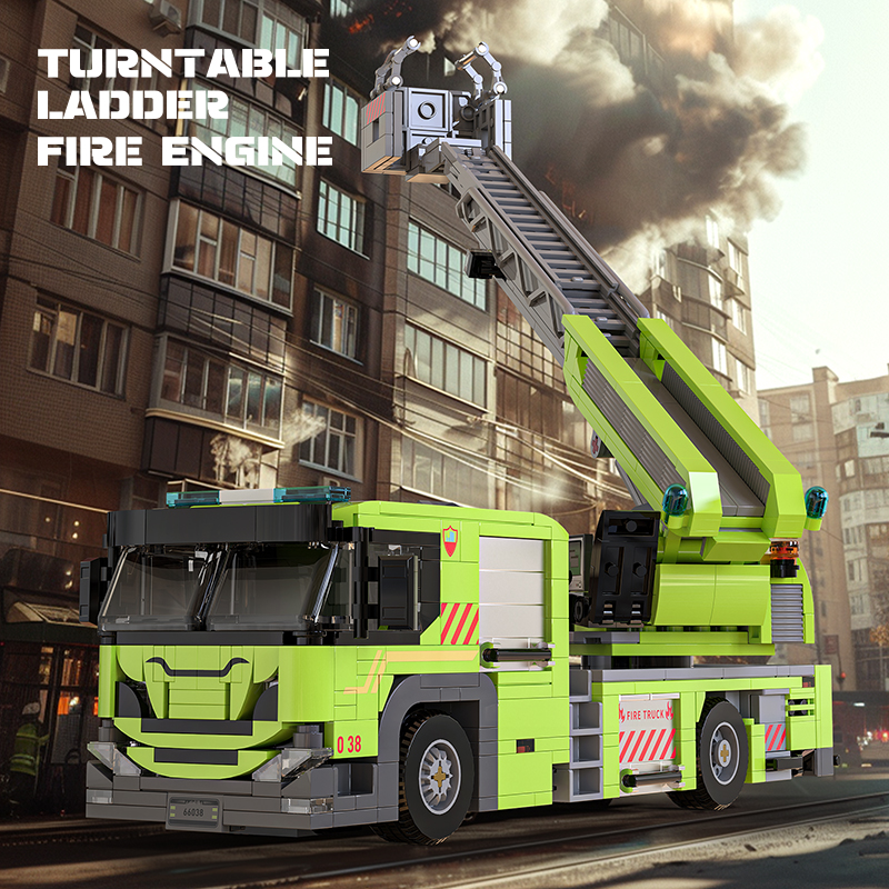 Turntable Ladder Fire Engine Building Blocks Kit DIY Bricks Educational Toys Model Display for Kids Gift 824Pcs Set NO.66038